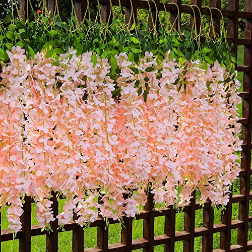 Pauwer - Confezione da 24 ghirlande Artificiali da Appendere, per Feste e Matrimoni, Rosa Chiaro, 24PCS