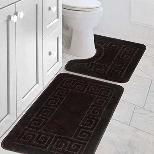Pauwer Set 2 Pezzi Tappetini per Il Bagno, Tappeto da Bagno Microfibra Antiscivolo, Tappetino Doccia Lavabili in Lavatrice,Marrone