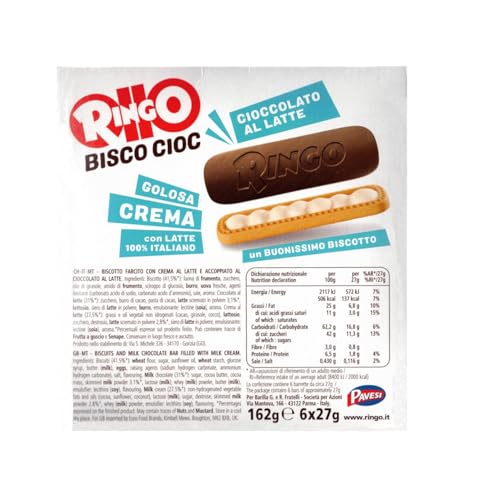 Pavesi Ringo Bisco Cioc Snack Biscotto con Crema al Latte e Tavoletta di Cioccolato 162g