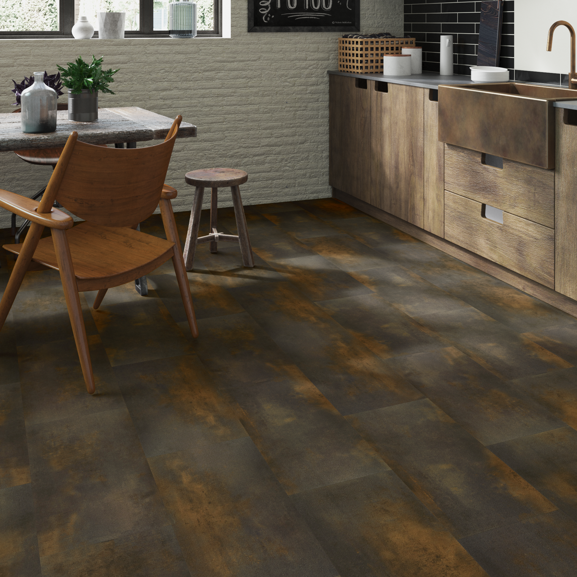 Posa Flottante con clic+, finitura in rilievo effetto metallico con bordi microbisellati che simulano le fughe. Il ridotto spessore permette la sovrapposizione al pavimento esistente senza intervenire su porte e finestre. Può essere posato da una sola persona