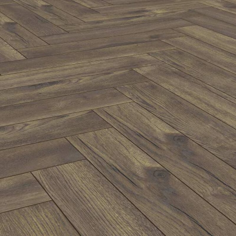 KRONOTEX coll. HERRINGBONE pavimento in laminato bisellato 4 lati finitura ROVERE SCURO.-Classe AC4 utilizzo Commerciale 32 (uso domestico - commerciale moderato).-Supporto in fibra HDF, incastro