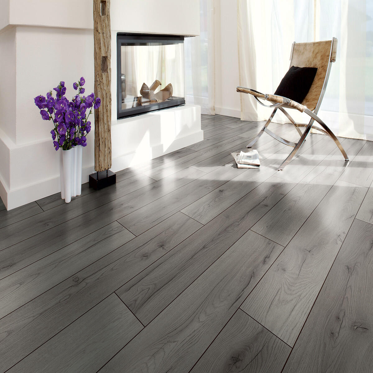 Pavimento laminato in HDF, colore grigio. Rendere più moderna la casa con un pavimento facile da posare e che permetta, in caso di usura o di problemi su alcune doghe, di poterle sostituire. Non richiede trattamenti di lucidatura, ceratura o levigatura. Il pavimento si adatta ad essere smontato, sostituito o riutilizzato, senza rovinare la vecchia superficie
