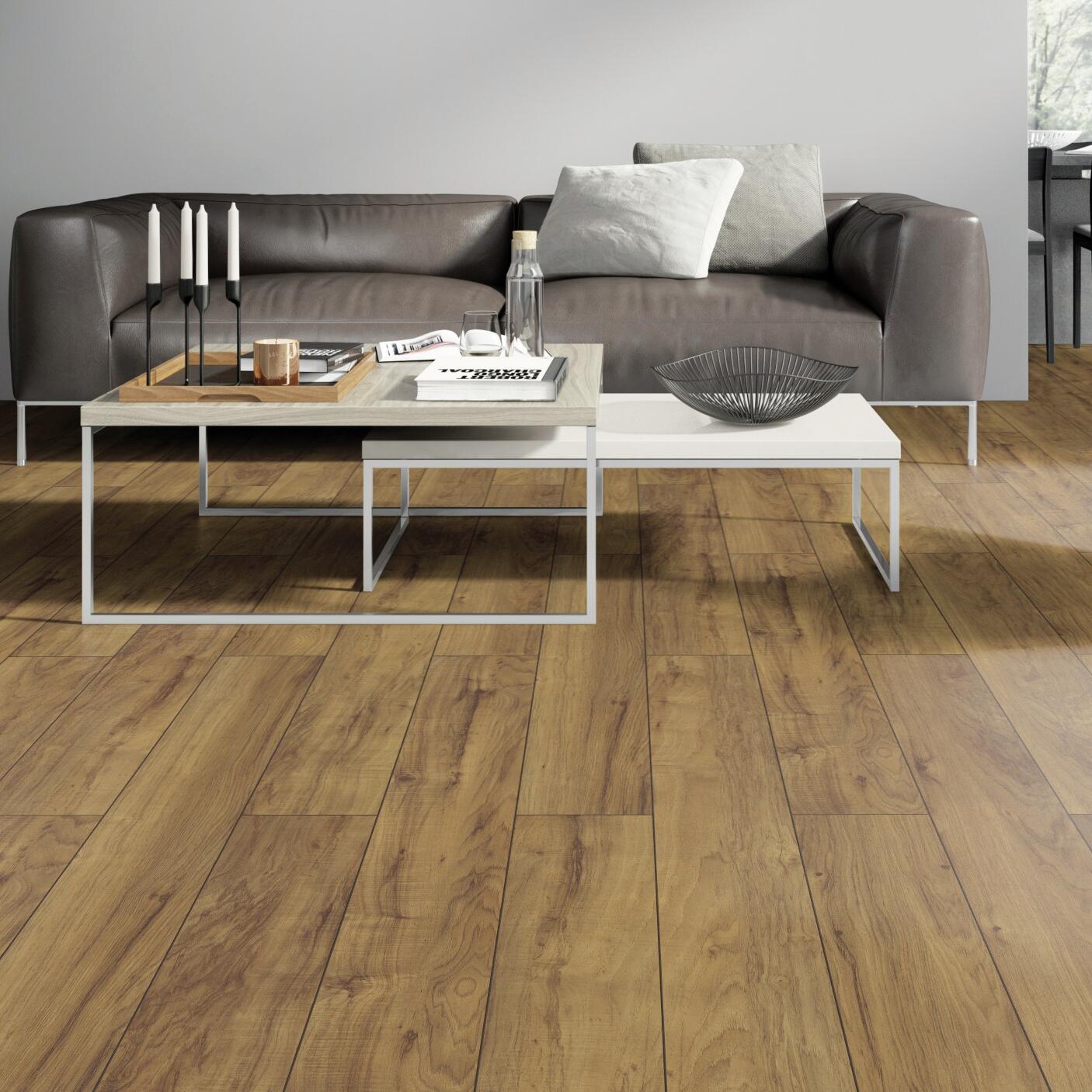 Posa flottante con click rapido finitura in rilevo e bordi bisellati che creano un effetto fuga. Adatto per un calpestio forte. Ideale per camera, soggiorno e cucina. idoneo per la posa su pavimenti riscaldati. Il sistema ad incastro semplificato permette un'installazione veloce. L'effetto in rilievo rende la superficie più realistica