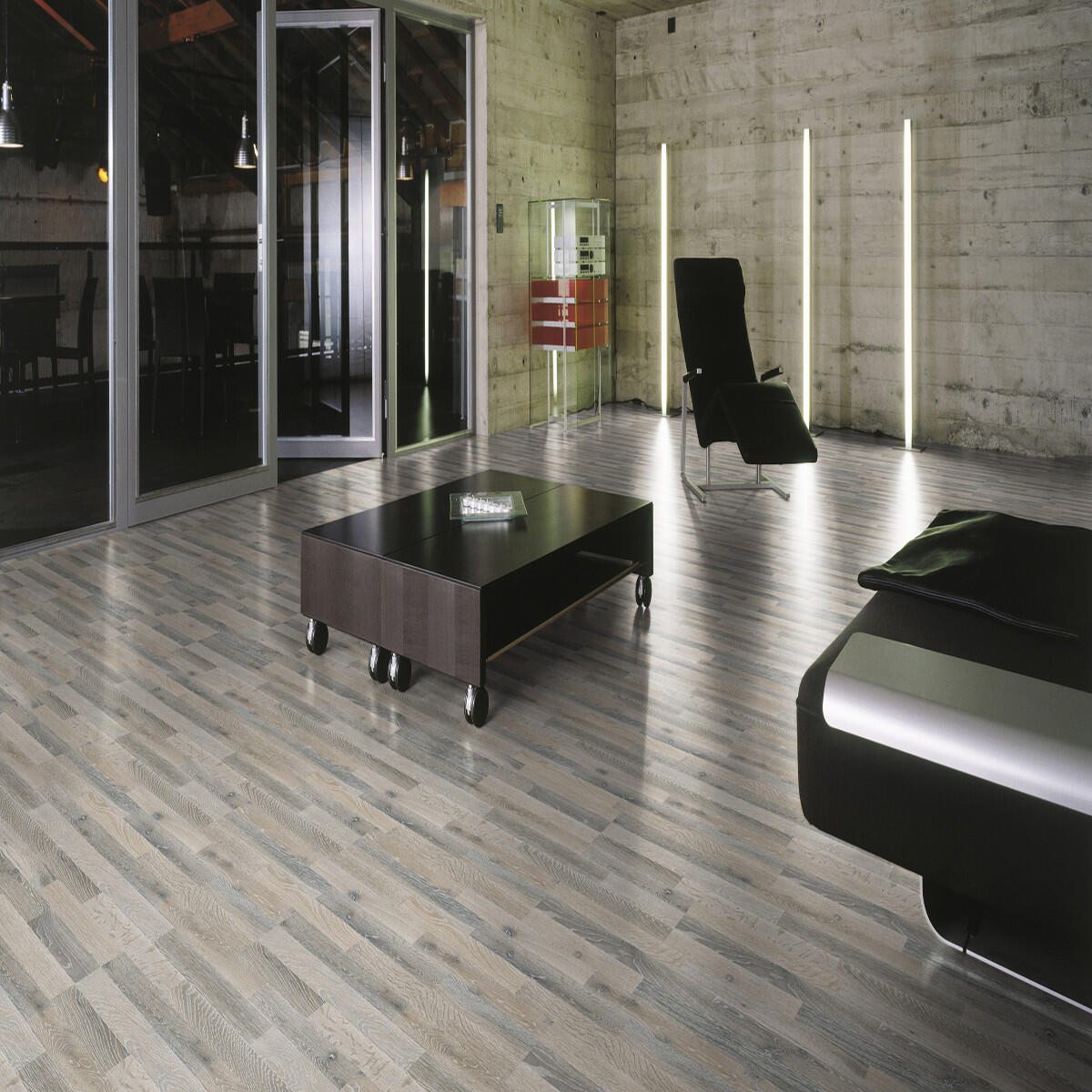 Pavimento laminato in HDF, colore grigio. Rendere più moderna la casa con un pavimento facile da posare e che permetta, in caso di usura o di problemi su alcune doghe, di poterle sostituire. Non richiede trattamenti di lucidatura, ceratura o levigatura. Il pavimento si adatta ad essere smontato, sostituito o riutilizzato, senza rovinare la vecchia superficie