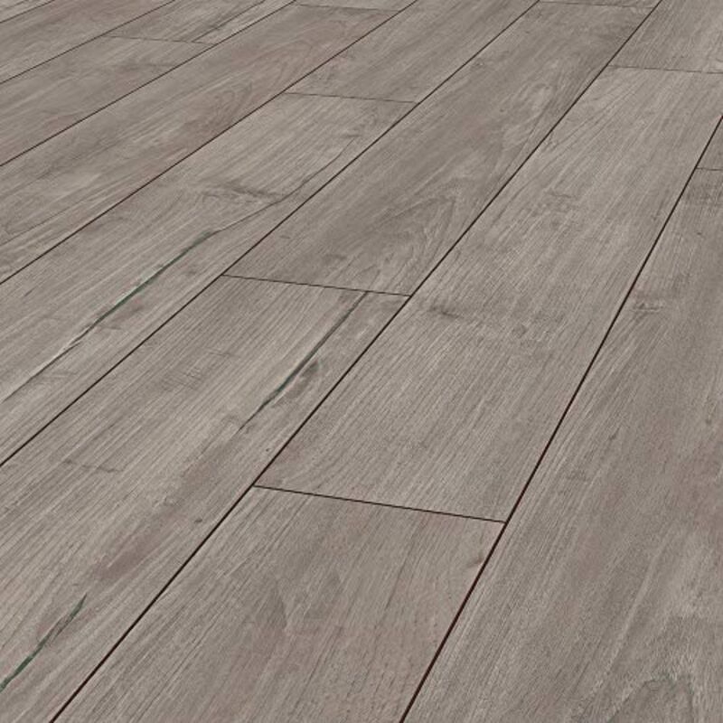 KRONOTEX coll. EXQUISIT pavimento in laminato bisellato 4 lati finitura TEAK GRIGIO RUSTICO.-Classe AC4 utilizzo Commerciale 32 (uso domestico - commerciale moderato).-Supporto in fibra HDF, incas
