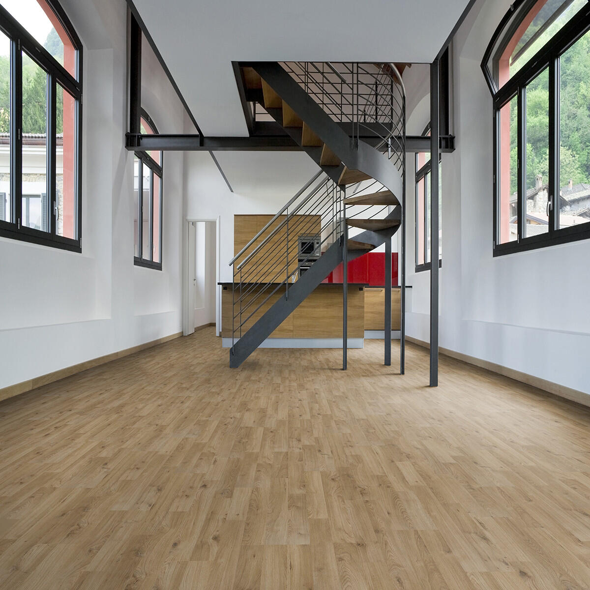 Pavimento laminato in HDF, colore marrone. Rendere più moderna la casa con un pavimento facile da posare e che permetta, in caso di usura o di problemi su alcune doghe, di poterle sostituire. Non richiede trattamenti di lucidatura, ceratura o levigatura. Il pavimento si adatta ad essere smontato, sostituito o riutilizzato, senza rovinare la vecchia superficie