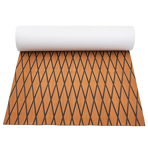 Pavimento in schiuma EVA, 239 x 89 cm, autoadesivo, opaco, barca per yacht, barca, yacht, pavimento in teak, antiscivolo, tappetino blu scuro, antiscivolo, tappeto autoadesivo (marrone + grigio)