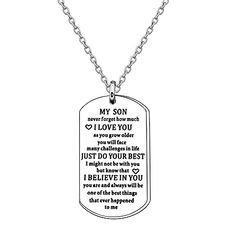 Collana regalo per figlio: "My figlio, mai dimenticare quanto ti amo..." stampa sulla parte anteriore per ricordare loro che sono sempre fantastici nei tuoi occhi quando giorni importanti.