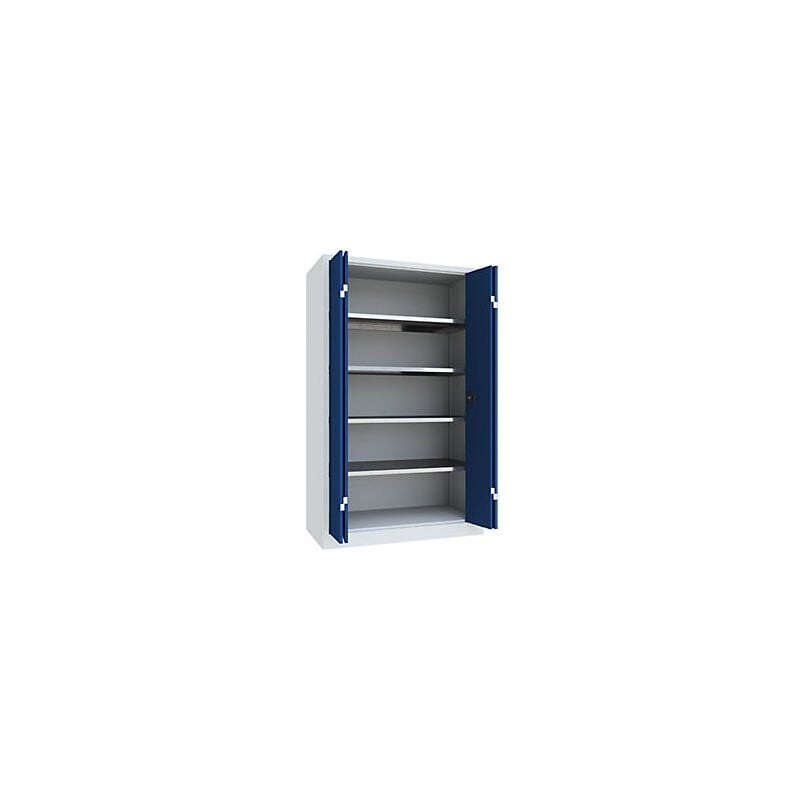 L'armadio con ante a libro è il partner ideale per tenere in ordine e al sicuro i tuoi documenti importanti e gli oggetti di valore. Realizzato in robusta lamiera d'acciaio e verniciato a polvere, questo armadio garantisce resistenza e durata nel tempo. Con 4 ripiani regolabili in altezza e una portata massima di 80 kg per ripiano, ti offre ampio spazio per organizzare al meglio i tuoi materiali. Le porte rinforzate con serratura a cilindro garantiscono la massima sicurezza e la manopola a tripla mandata offre un'apertura e chiusura fluida. Con dimensioni di 1950x1200x600 mm, questo armadio si adatta perfettamente a qualsiasi ambiente, sia in ufficio che a casa. Non perdere l'occasione di migliorare la tua vita quotidiana con questo prodotto pratico e funzionale!