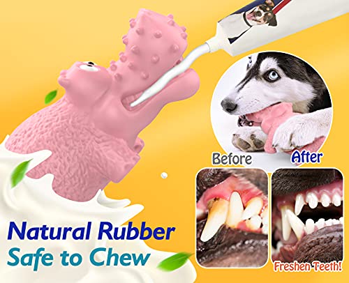 Pawaboo Giocattolo da Masticare per Cani, Giochi per Cani con Squeak, Motivo di Ippopotamo per Cani Denti, Giocattoli di Pulizia per Cani Media, in Gomma Naturale, Resistente e Durevole - Rosa
