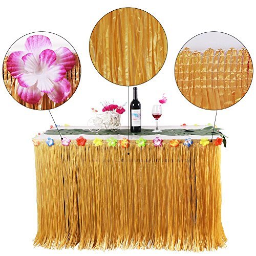 Dimensioni e pacchetto - 2,7 x 0,8 m (275 cm*75 cm) Luau Table Skirt, il pacchetto comprende 1 * Luau Grass Table Skirt con 18 fiori.