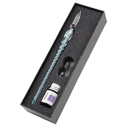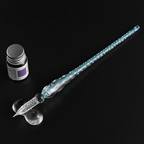 Pawaca - Penna a immersione in vetro, stile vintage, realizzata a mano, elegante penna per firme e decorazioni scritte a mano, in confezione regalo Blue 01