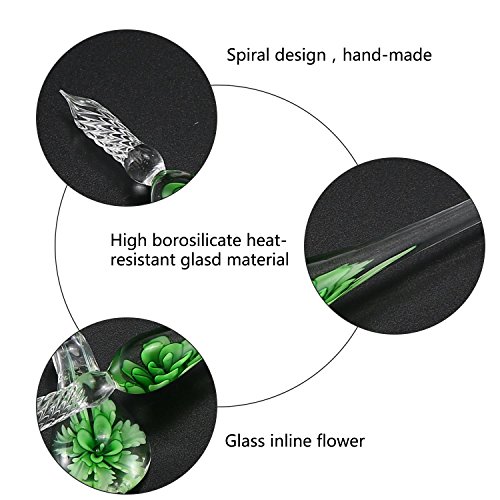 Pawaca Pennino in Vetro,Cristallo Vetro Dip Ink Pen Set, Realizzato a Mano in Cristallo Vetro Dip Pen Signature Pen/Penna,Fiore Stile Vetro Penna Penna Set,Penna per Scrivere Arte Decorazione