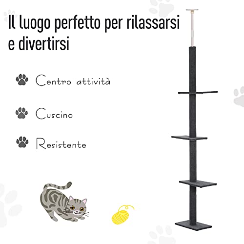 Pawhut Albero Tiragraffi per Gatti 4 Livelli con Colonna Rivestita, Grigio