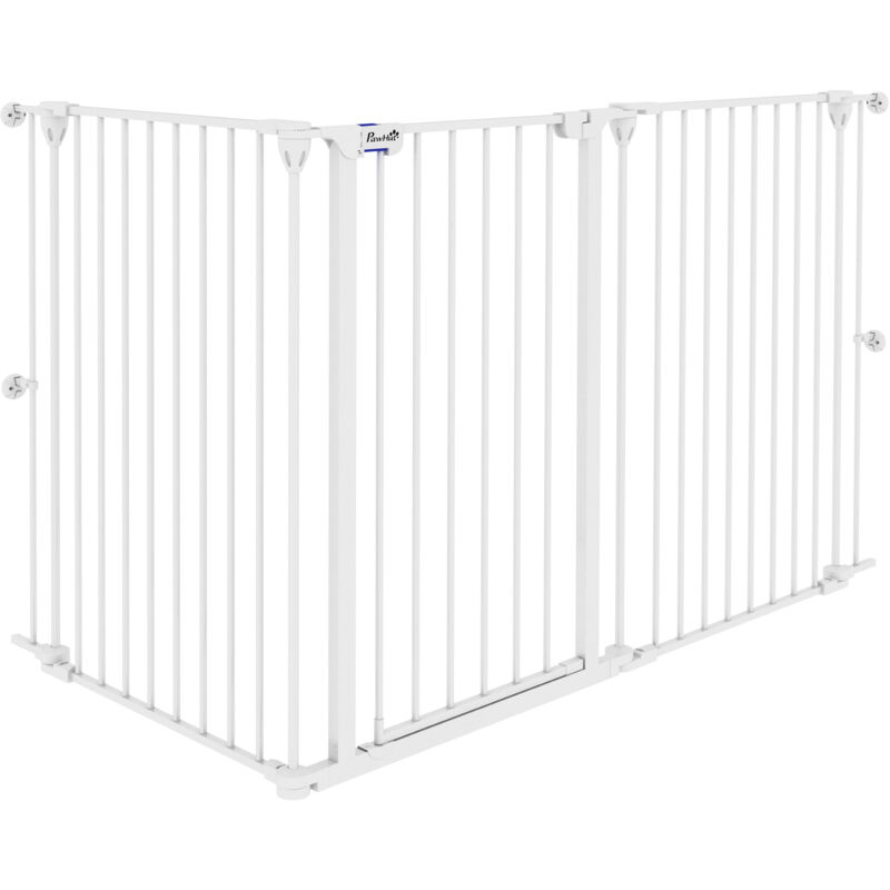 Descrizione: Tieni il tuo pet al sicuro in casa con questo cancellino per cani PawHut. Versatile e pratico, ha un doppio sistema di blocco che previene l'apertura accidentale della porta e si sblocca comodamente usando una mano sola. Il design pieghevole ti consente di riporlo con il minimo ingombro quando non lo usi e puoi installarlo dando una forma a U o a L. Migliora la sicurezza in casa per il tuo amico a 4 zampe con questo cancelletto! Caratteristiche: ● Chiusura con doppio blocco per evitare aperture accidentali, basta una mano per aprirlo ● Basta una spinta per chiudere il cancellino per cani, la porta si blocca in automatico ● Forma regolabile a U o L per adattarsi ai tuoi spazi ● Telaio in solido acciaio con rivestimento a polvere, per resistere all'uso ● Cancelletto per cani pieghevole e salvaspazio ● Ideale per cani di taglia media con altezza alla spalla fino a 50 cm ● Ottimo per delimitare porte, corridoi, scale. ecc. Dati tecnici: ● Colore: Bianco ● Materiale: Acciaio