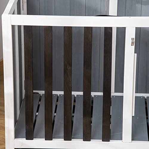 PawHut Gabbia per Cani Pieghevole in Legno MDF con Vassoio Estraibile e Tetto Apribile, Recinto per Cani di Taglia Piccola e Media Fino 15kg, Grigio