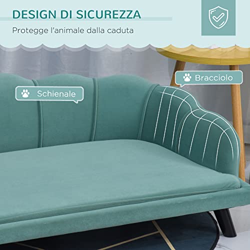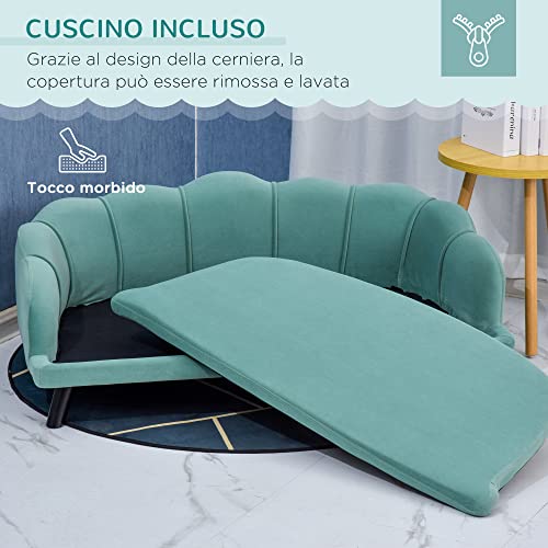 DIVANETTO COMODO: La seduta del divano per cani ha un cuscino imbottito in gommapiuma 28D e rivestito con morbido tessuto color verde acqua. Grazie all'ampia seduta, questo divano è perfetto anche per cani di taglia medio-grande.