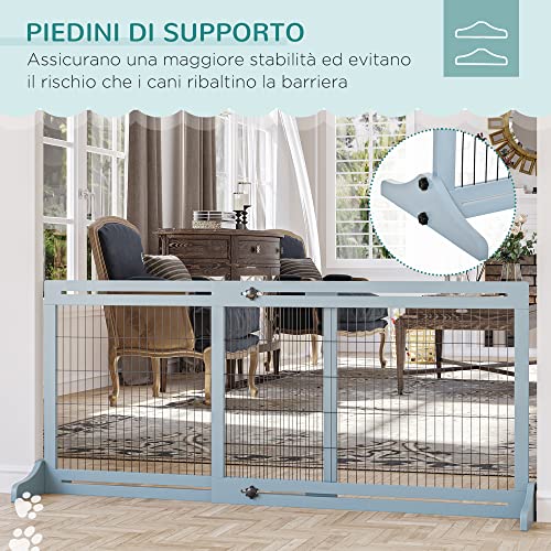 PawHut Set 2 Pezzi Divano per Cani Max 25kg con Cuscino Imbottito e Cancellino per Cani Estensibile 104-183cm con Piedini Laterali, Verde Acqua e Blu