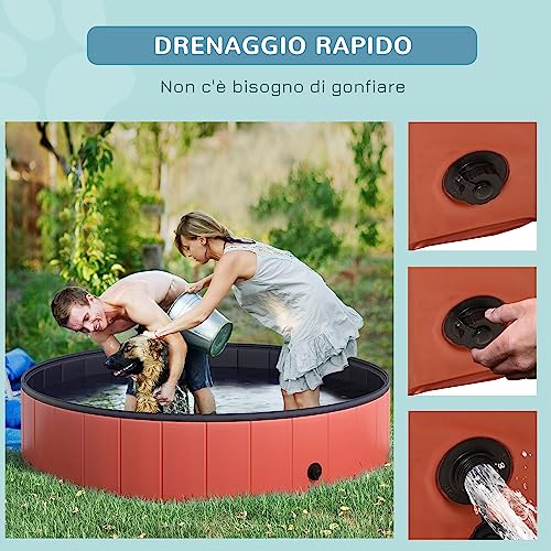 Pawhut Piscina Pieghevole per Cani in PVC, Rosso, 140x30cm (ØxH)