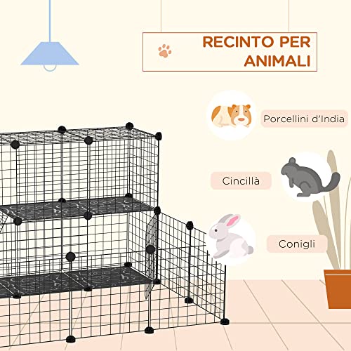 PawHut Recinto per Conigli, Porcellini d'India e Roditori Modulabile, Box per Animali con Accessori Montaggio in Acciaio, 105x105x70cm, Nero