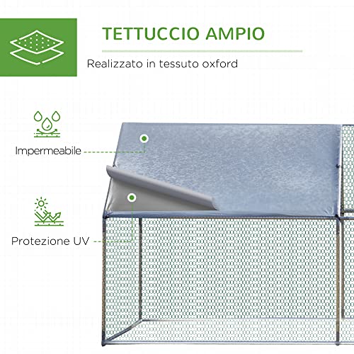 Pawhut Recinto per Galline e Conigli in Metallo con Copertura in Tessuto Impermeabile Anti-UV, 300x600x195cm Argento