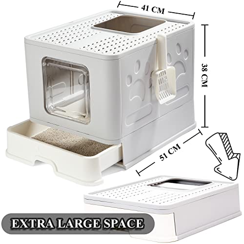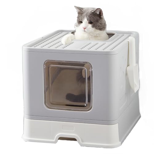 Pawsayes Toilette per gatti, Lettiera per gatti pieghevole con coperchio lettiera chiusa, scomparto inferiore rimovibile per una facile pulizia