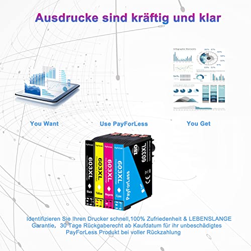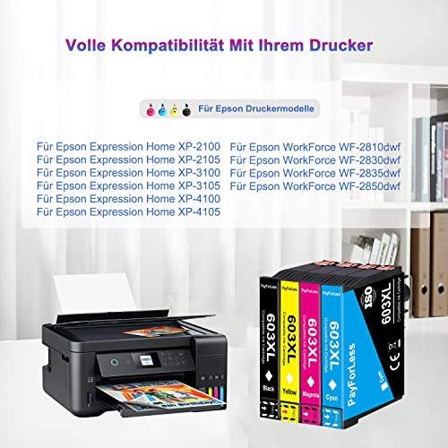 PayForLess 603XL Cartucce Compatibili per Epson 603 XL Multipack per Expression Home XP-2100 XP-2105 XP-3100 XP-4100 Workforce WF-2810 WF-2830 WF-2850 (1 Nero, 1 Ciano, 1 Magenta, 1 Giallo)