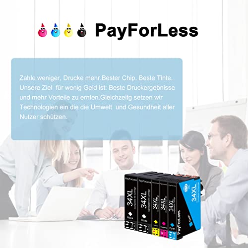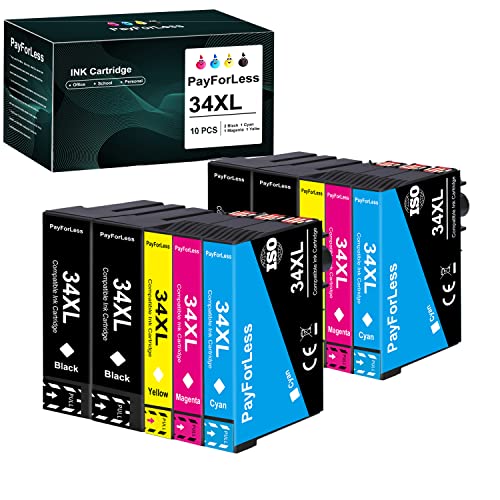 PayForLess 34 34XL Cartucce d'inchiostro compatibili per Epson Workforce Pro WF-3720dWF, WF-3725DWF, WF-3720, WF-3725, confezione da 10 pezzi: 4 nero, 2ciano, 2 magenta, 2 giallo