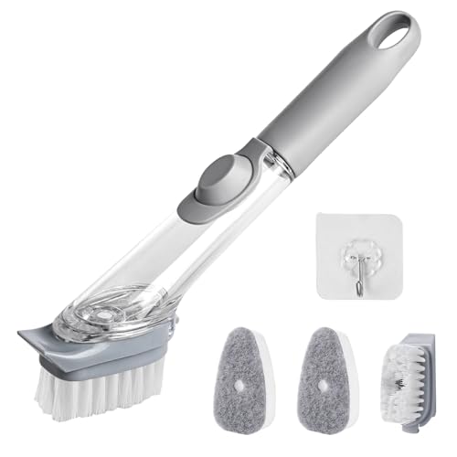 PAYFULLY Spazzola per piatti multifunzione con 4 testine di pulizia, spazzola per lavare i piatti con dispenser per detersivo, set di spazzole per piatti, pentole e lavelli