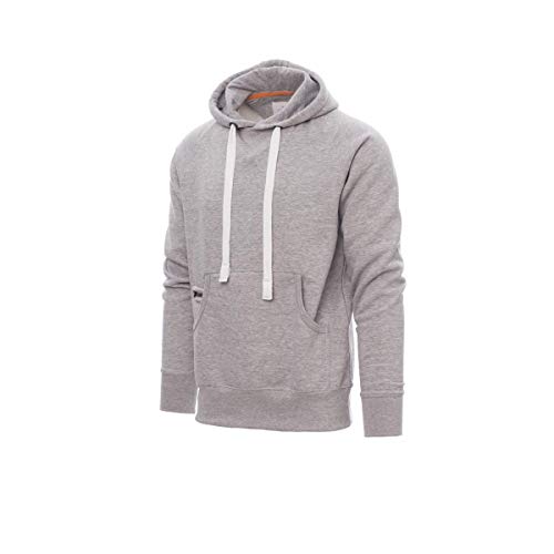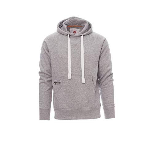 PAYPER Atlanta+ Felpa con Cappuccio da Uomo Misto Cotone Tasche a Marsupio Manica Raglan Polsini Vita in Costina Taglie Forti Grigio Melange (5XL)