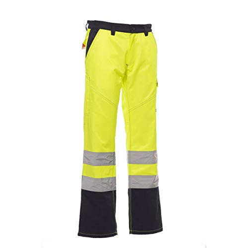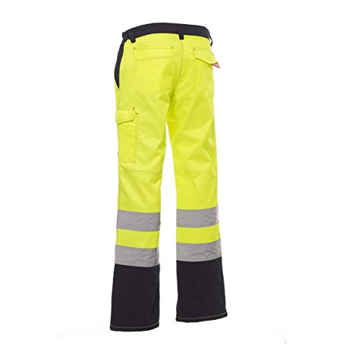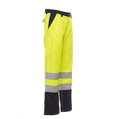 PAYPER Charter Polar Pantalone da Uomo Invernale Foderato da Lavoro Misto Cotone Chiusura Zip Alta visibilità Tasche Anteriori Laterali Posteriori (Giallo Fluo/Blu Navy, 3XL)