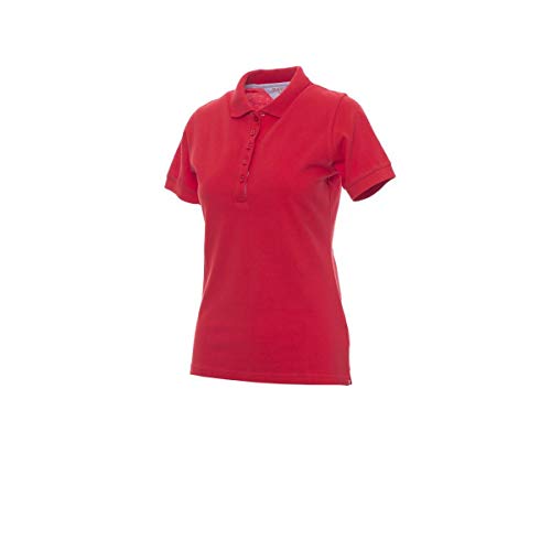 PAYPER Glamour Polo Sfiancata da Donna a Manica Corta 100% Cotone Effetto Perlato Spacchetti Laterali Rinforzo Sagomato retrocollo Inserti in Popeline Red Passion (M)