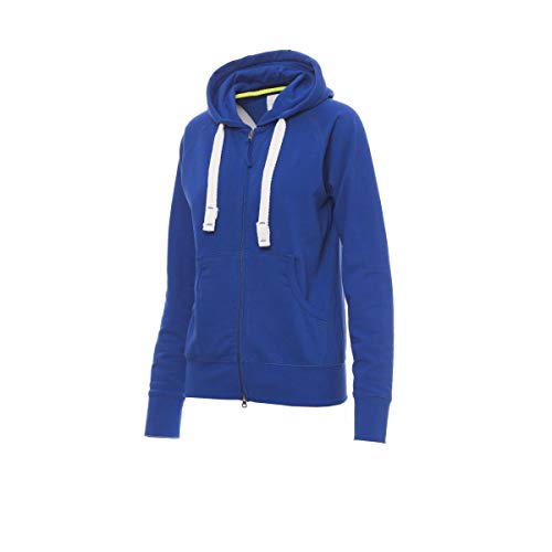 PAYPER Hawaii+ Lady Felpa con Cappuccio da Donna Sfiancata Misto Cotone a Manica Lunga Chiusura Zip Intera SBS Manica Raglan Tasche a Marsupio Blu Royal (S)