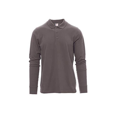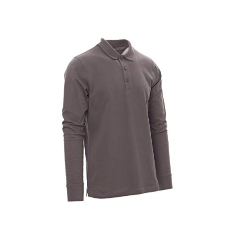 PAYPER Verona Polo da Uomo a Manica Lunga 100% Cotone Effetto Perlato Spacchetti Laterali Colletto Polsino a Costine Grigio Smoke (3XL)