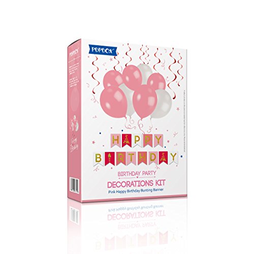 PBPBOX Decorazioni per Feste di Compleanno Include Banner Happy Birthday e Palloncini per Festa 30pcs, Impiccagioni con Turbolenza 12pcs, Pompa Palloncino 1pcs