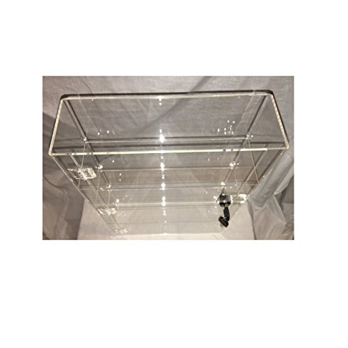 Una vetrina in acrilico trasparente lucida con porta anteriore e serratura di sicurezza. 2 chiavi incluse.