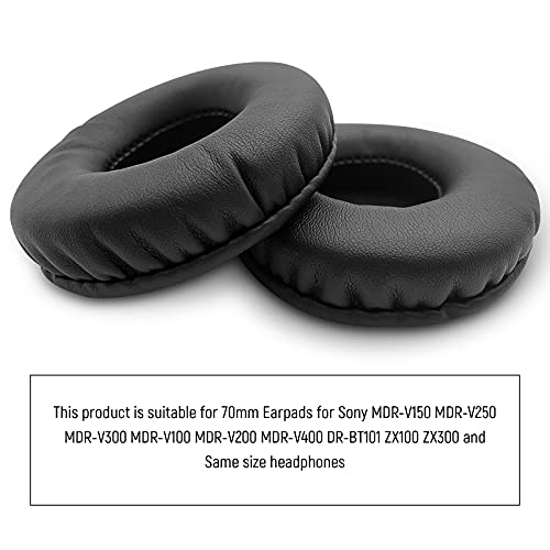 PChero - Cuscinetti di ricambio per cuffie in pelle artificiale con proteine artificiali, compatibili con cuffie SONY MDR-V100, MDR-V150, 2 paia (diametro: 70 mm, nero)