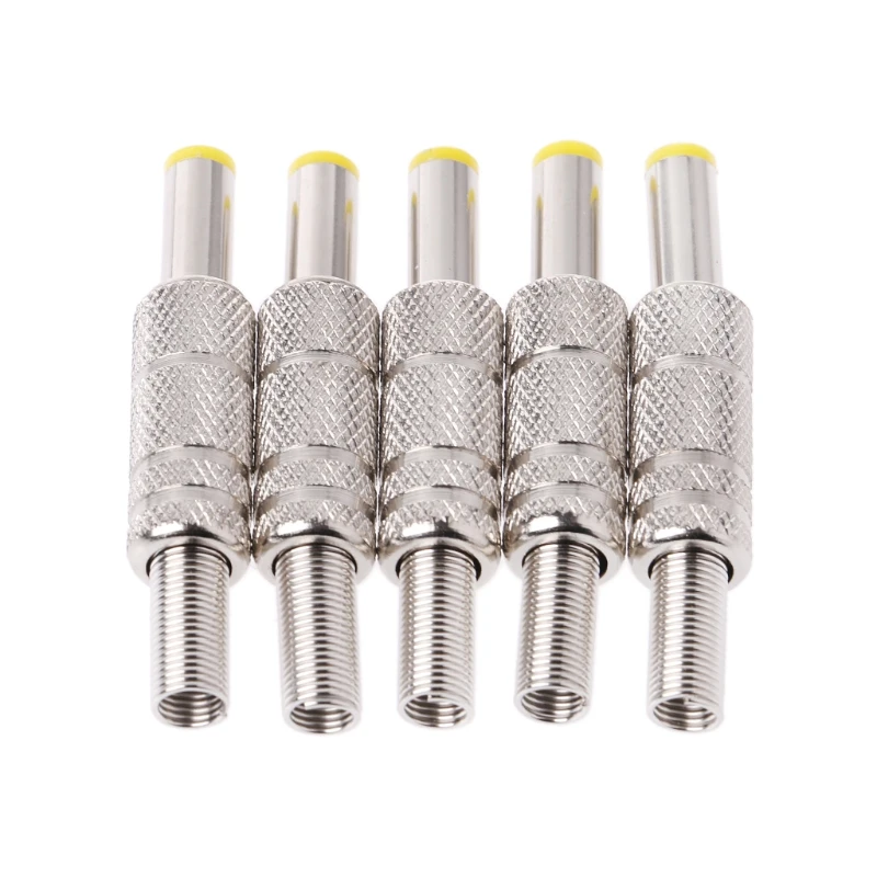5 Pcs/1 Set Silver Metal 5.5mmx2.1mm DC Power Male Plug Jack Adapter Connector with Yellow Head DC Power Male Plug