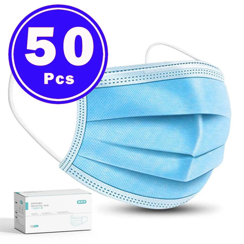 50 Pcs/Box Blue Medical Mask Disposable 3 Layer Ply Filter Mask Dustproof Earloop Mouth Face Mask Breathable Medical Masks