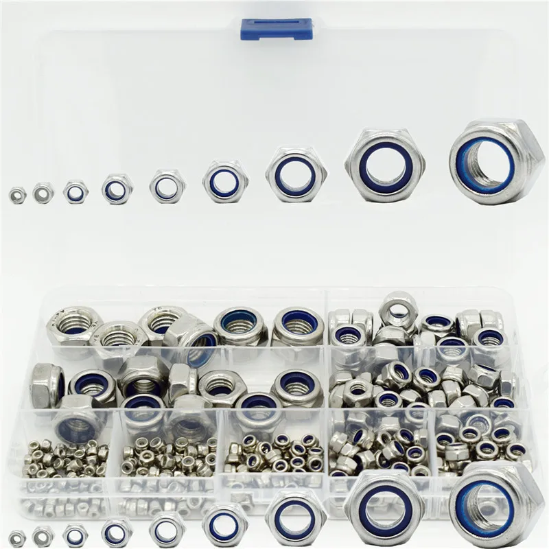 321 Pcs/box Nylon Lock Nut 304 Stainless Steel M2 M2.5 M3 M4 M5 M6 M8 M10 M12 Hex Hexagon Self Locking Nut Assortment Kit