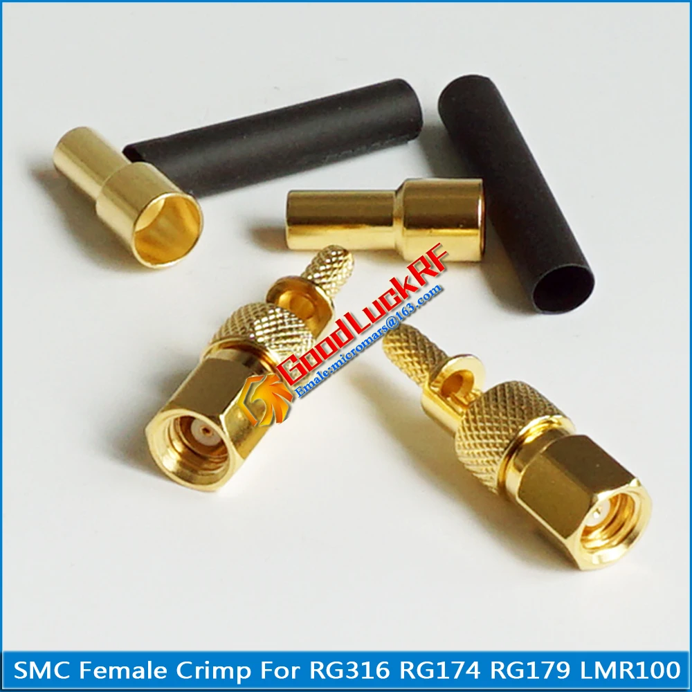 10X Pcs/lot High-quality RF Connector SMC Female Window Crimp for RG316 RG174 RG179 LMR100 Cable Jack Gold Plated Coaxial