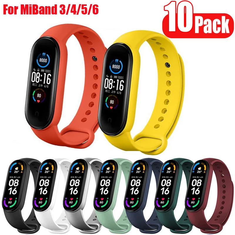 10 Pcs/Pack Wrist Strap For Xiaomi Mi Band 6 Bracelet Miband 5 4 3 Replacement Silicone Band For Xiaomi MiBand 6/5/4/3 Accessory