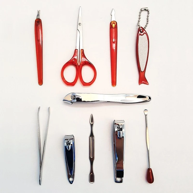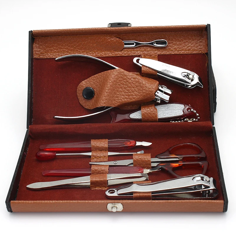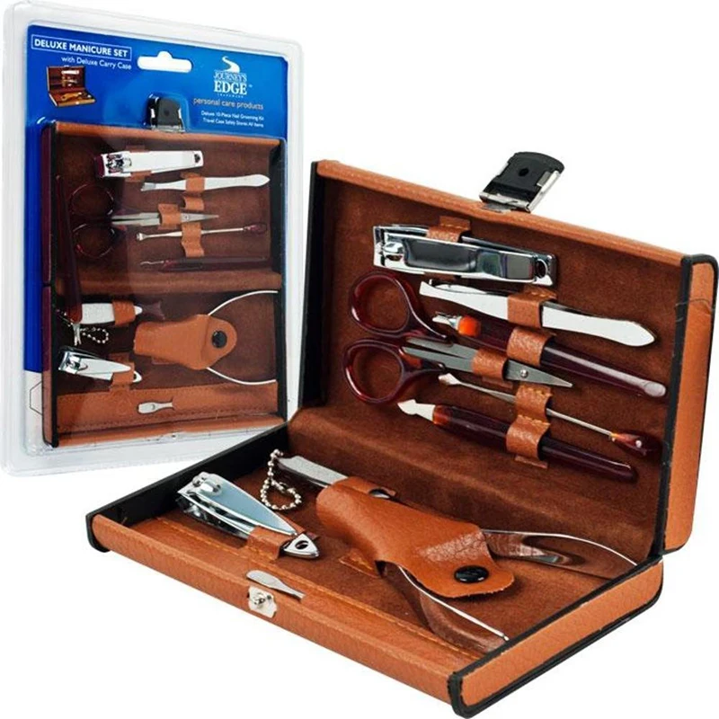 10 Pcs/set Collection Deluxe Nail Clippers Yellow Skin Carbon Steel Manicure Set With Carrying Case Manicure Nail Art Tools New