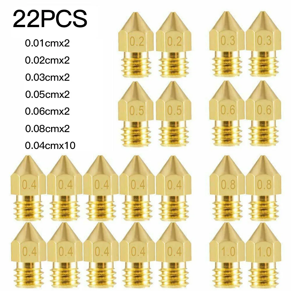 22 Pcs/set MK8 Nozzle Head 3D Printer Machine Extruder Heads 1.75mm Replacement for CR-10