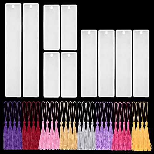 90 PCS/Set Segnalibro in Resina Stampo Epossidica, 10 Pezzi Segnalibri Resina+80 Pezzi Nappe Colorate in Resina Epossidica Gioielli DIY Stampo in Silicone