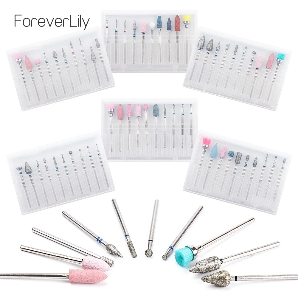 10 PCS/SET Stainless Steel Nail Drill Bits Manicure Milling Cutter Remove UV Gel Polish Hard Dead Skin Nail Polisher Nail Tools