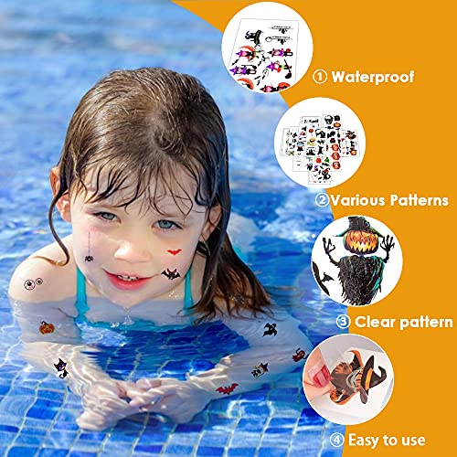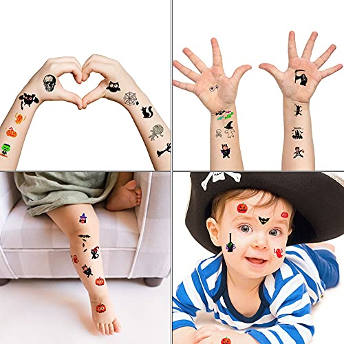 [Design squisito]: Adesivi di Halloween, disegni di tatuaggi di Halloween super divertenti e vibranti, sono molto attraenti per i bambini, creando una forte atmosfera festosa, per i tuoi bambini per portare più divertimento e gioia.