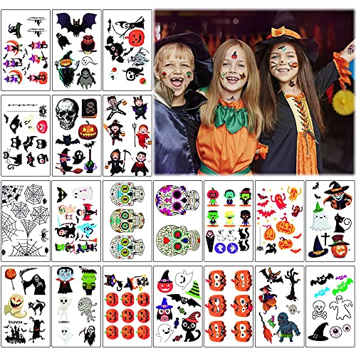 378 PCSTatuaggi Halloween, Adesivi Tatuaggi di Halloween, Halloween Tatuaggi Set, 40 Fogli Tatuaggi Trucco per Halloween, Tatuaggio Temporaneo per Bambini Festa di Halloween Decorazione