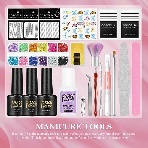 All in One Kit Semipernanente Unghie Completo:Questo Peacecolor set per manicure arrivato contiene 18pz smalti semipermanenti gel muticolori,36W LED U V unghia lampada,soak off base coat e top coat,3pz UV nail gel,elettrica unghia fresa,unghia decorazione rhinestone con gli strumenti per unghie.