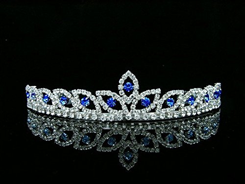 Peacock Eye Bridal Wedding Prom Tiara Crown - Blue crystal silver plated T421 by Venus Jewelry